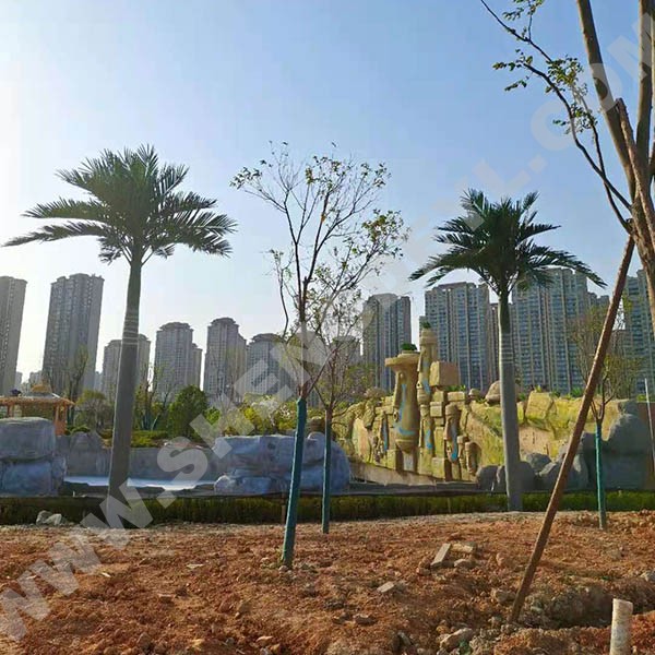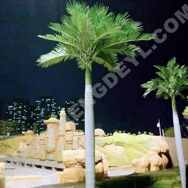 仿真椰子樹通常采用璃鋼樹脂樹桿結構,采用高性能環(huán)氧樹脂和玻璃纖維纏繞成型,樹桿內采用國標鋼結構,樹葉采用ABS塑料或PU等高性能防阻燃環(huán)保材料。耐腐蝕性能良好,耐老化耐高溫防阻燃,更加環(huán)保,防紫外線。