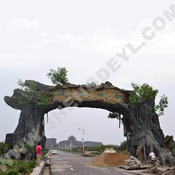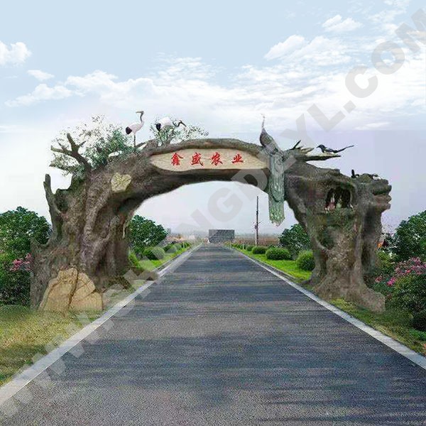 水泥仿真樹大門是仿真樹制作的較高境界,主要使用于公園景區(qū)、生態(tài)園入口、主題餐廳大門,農(nóng)家樂(lè)等主題景觀的營(yíng)造。水泥仿真樹大門同時(shí)借鑒了根雕工藝和雕塑工藝,仿真植物采用雕塑手法制作,仿真自然界中常見(jiàn)的植物造型,鑲嵌于大門景觀中,突出整體環(huán)境的格調(diào)。